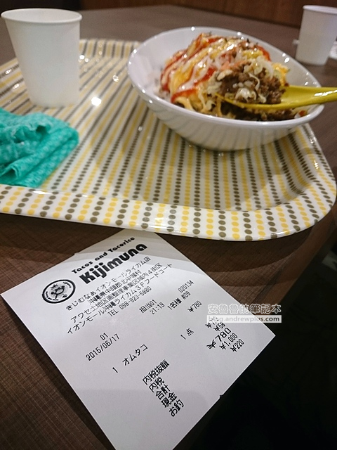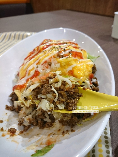 而我們在永旺夢樂城分店吃的時候也是覺得超好吃的~香滑的蛋包,微辣略鹹的塔可飯! 第一個沖繩的晚上就賭對了餐廳! 開心~~
