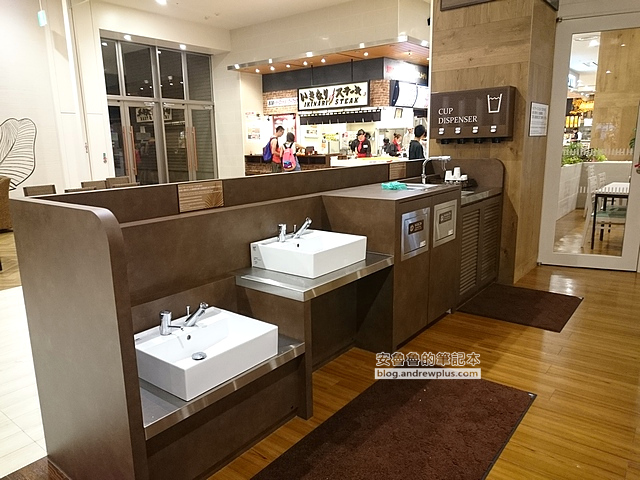 ▼而且還有洗手台,和可以自行取用的飲用水~還有消毒好的抹布可以取用用來擦桌子~真是乾淨又整潔!