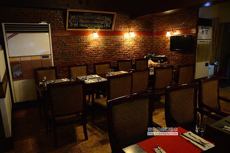 西餐餐廳的裝潢佈置,牆上掛的是古蘭經的經文,用餐空間寬敞適合多人數聚餐,氣氛輕鬆