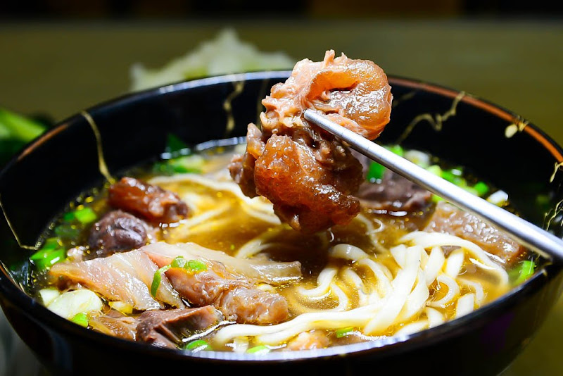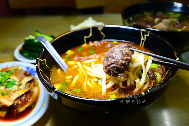 紅燒的湯頭鹹香有點微辣,喝起來是很豐富的味道,有蔥燒的香氣、牛肉湯的甘甜和淡淡的辣味,如果喜歡吃辣的朋友可以多加一點辣椒醬或酸菜,麵條咬起來是有Q度與厚實口感的,吃起來很有飽足感,厲害的地方是麵條也吸附了牛肉湯,把麵條夾起來吹涼放進嘴裡,就算不配湯,一樣可以嚐到湯頭的味道!