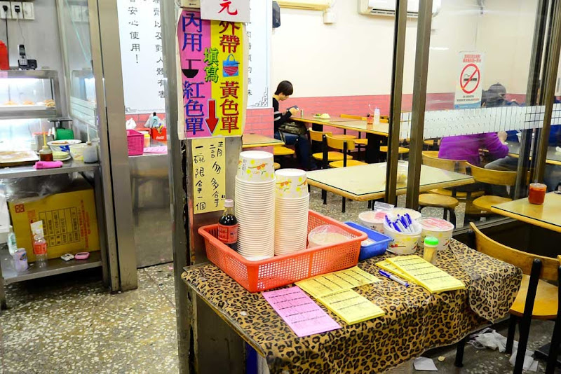 靠近入口處有個自助區,桌子上面擺著紅黃兩色的點菜單,紅色是內用,黃色則是外帶用,此外如果外帶的客人需要紙碗,也可在這裡自取,但一碗麵請只限拿一個