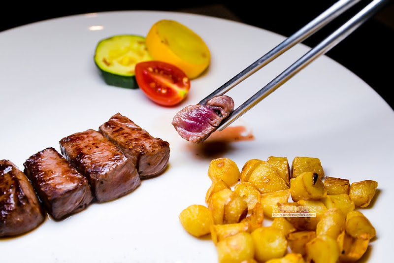 貼心將牛排分成兩份處理,可以品嚐不同熟度的口感。前半段的五分熟,依舊能保留鮮嫩多汁的口感