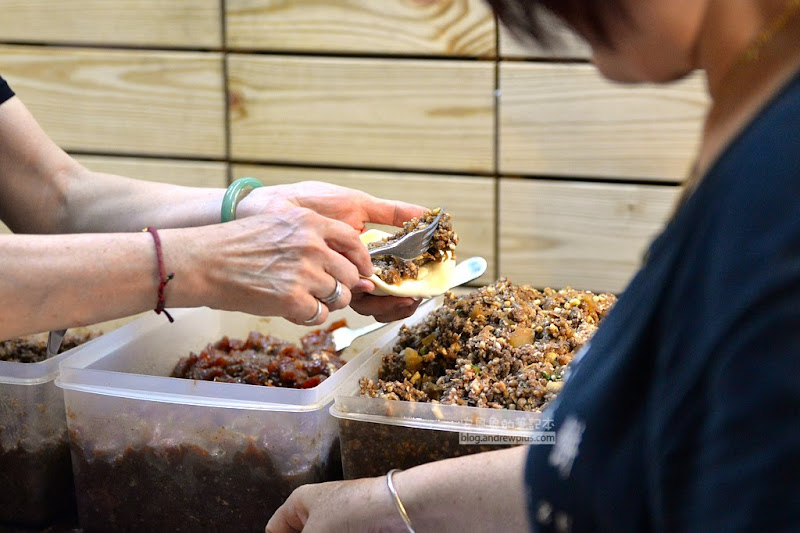 阿姨手腳超快,不一會兒就已經包了五六十顆胡椒餅,每顆胡椒餅還要放上酥油,這是有層次、酥脆餅皮的秘密