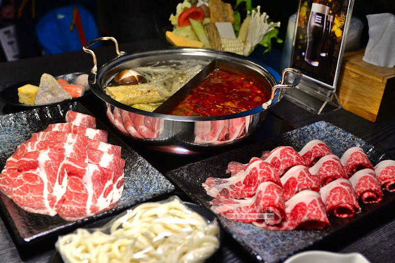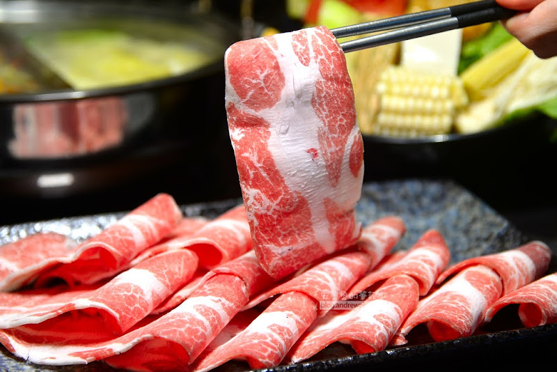 肉片原來超長的,沾上了麻辣鍋的紅色,讓人看了猛吞口水,霸王牛肉質吃起來厚實且Q