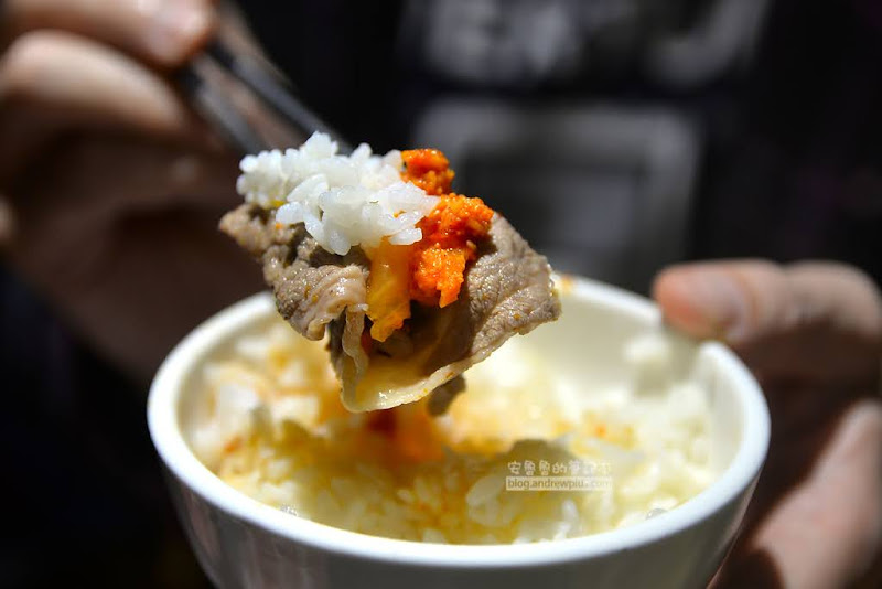 另外加點的明太子泡菜和白米飯一起包在伊比利肉片裡,有澱粉有蛋白質,佐以明太子泡菜,就是爽快