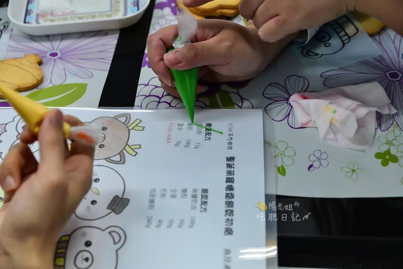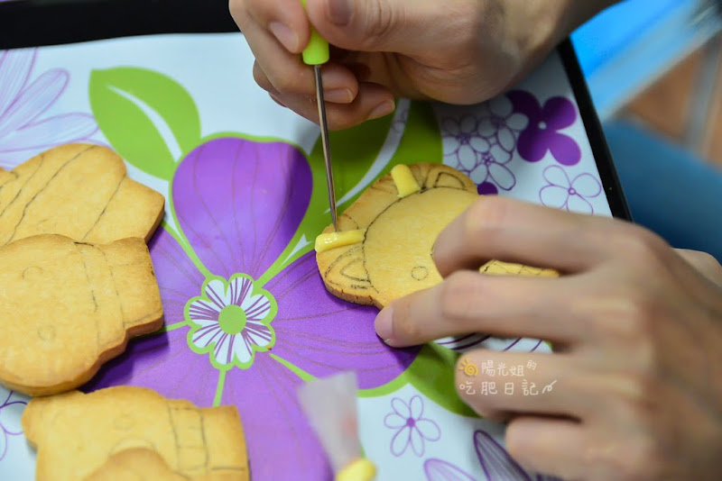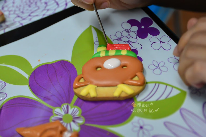 依照畫好的線,把糖霜塗好塗滿~看老師做好像很輕鬆,可是姐怎麼塗就是不均勻!