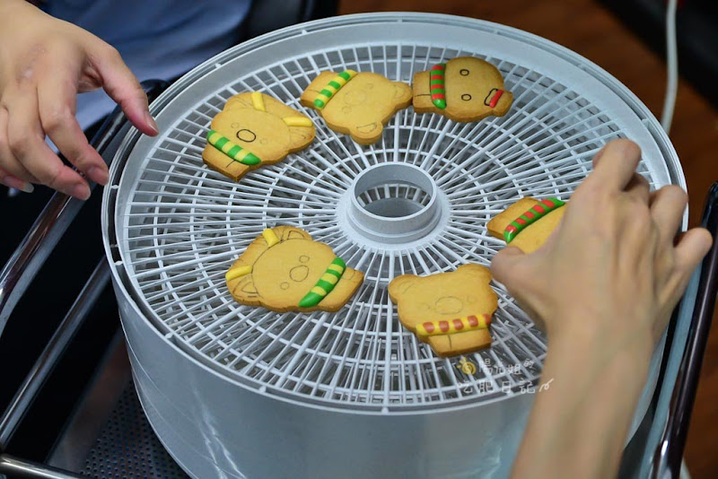 畫好了第一部分的區塊,要先放進烘乾機裡面烘乾,如果家裡面沒有這種專業的烘乾機,那需要一個可以設定在35度的烤箱只開上火,才能達到一樣的效果