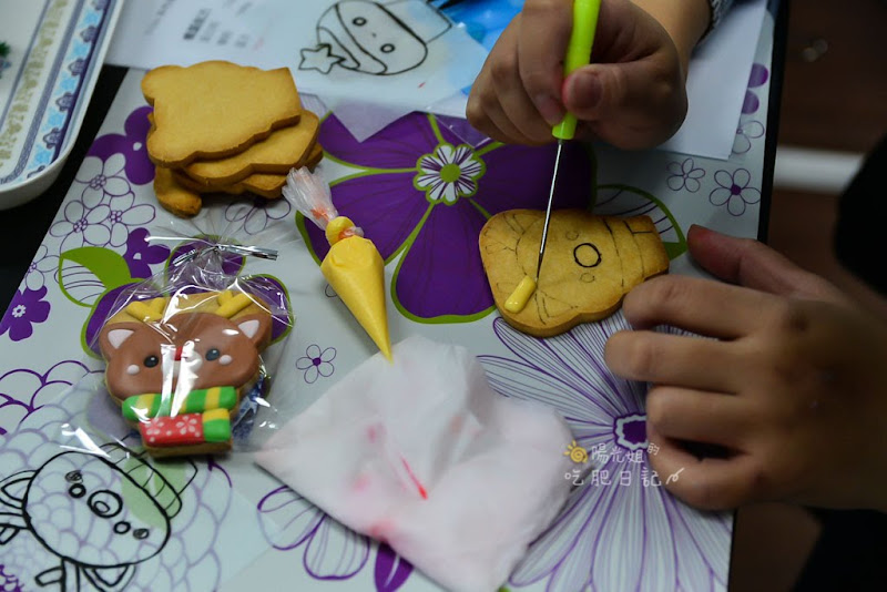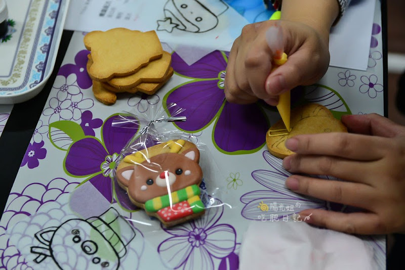 姐在家裡靠著麵包機,放入麵粉、糖、鹽、奶油,簡單就做出蛋糕、吐司麵包,所以偶而也想來挑戰一下更困難的糕點,特別是像餅乾、甜點等。但這可不像吐司按個幾下按鈕就做得出來,家裡也不一定有適合的器材,實在很想來嘗試看看,所以就報名了Yumi手作烘焙的萌寵糖霜餅乾初階課程。還沒開始做之前,看著魚兒老師的成品,姐就已經羨慕的流口水了! 課程結束姐捧著親手做出超可愛的糖霜餅乾,感覺超療癒又超開心的啦!