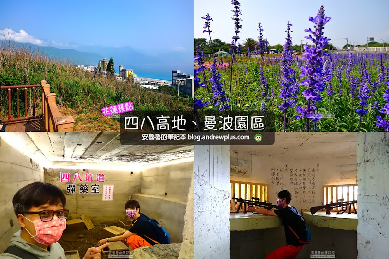 四八高地因此地海拔為48公尺而得名,日據時代為防美軍登陸,設了砲陣地,國民政府又修建了180公尺的坑道,防衛花蓮機場北方和七星潭海岸線,在花蓮縣整府的修整之下,開放了四八高地、四八坑道景點,不但可以從四八高地景觀步道欣賞七星潭的月牙灣美景,還可以在戰備坑道裡頭體驗戰時地景張氣氛及了解當地的發展現況,四八坑道曼波園區的花園造景裡拍照,是適合全家大小、親子旅遊、散步看風景和網美打卡的景點!